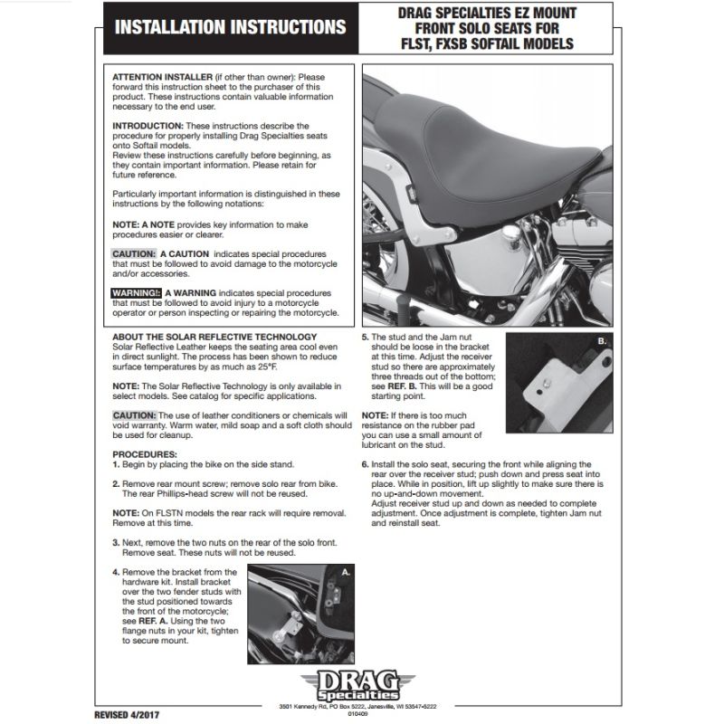 - Seat covers the two seat fender studs for that low clean look
